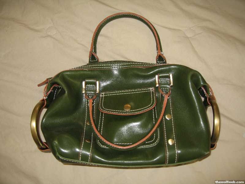 9. Small green purse, purple lining 7x9x3 $2