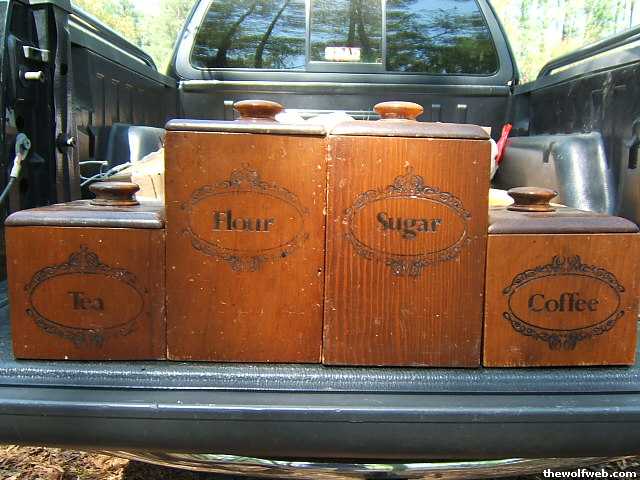 PS - The kitchen boxes are not that large either, you can put a whole bag of flour in them -- that's about it.Yeah, they are old. They've been in storage since the 80's or so... but I figured some college student with a messy kitchen may want them.