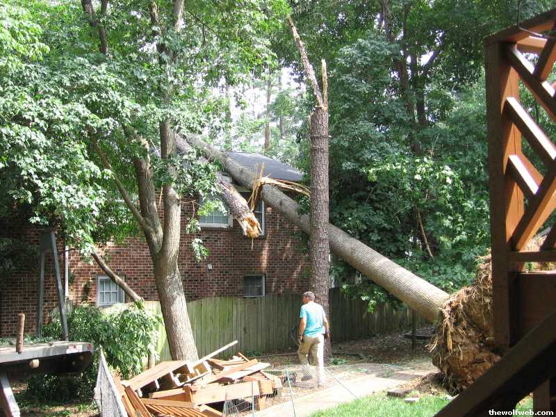 btttyeah, there must have been a tornado that tore through my neighborhood in north raleigh. some guy said he saw it:"A homeowner on Salem Woods Drive off Falls of Neuse Road told WRAL that he saw a tornado form and touch down."[http://www.wral.com/news/9276909/detail.html]i walked around my neighborhood and took some pics:quite a bit of small hail, it was damn windy:minivan on fiesta way got jacked:worst damage i saw in my neighborhood, two huge hardwoods tagged this house:a friend of mine had his house pretty messed up. they interviewed his mom, Barbara Miller, in this article:[http://rdu.news14.com/content/your_news/raleigh/?ArID=85083&SecID=17]:here's a pic i took of it:
