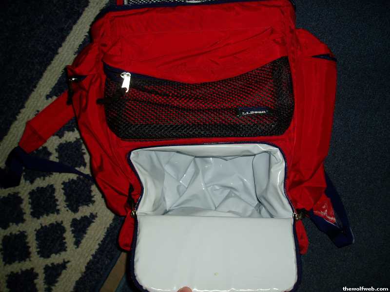 LL Bean backpack cooler, Top part can hold about 10 cans plus ice, bottom can hold about 6 plus ice. Side pockets and zipper inside top compartment for storage as well. [Edited on June 29, 2006 at 10:30 AM. Reason : .]