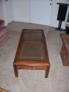 I have a coffee table and end table that I am no longer using. They are not a matching set. I will give the end table to anyone that comes and picks it up. the coffee table is in good shape and is a dark wood frame with 2 glass inserts. I would like to get $10 OBO for it, and the high bidder will have to pick it up. Pictures will be made available this afternoon if necessary.