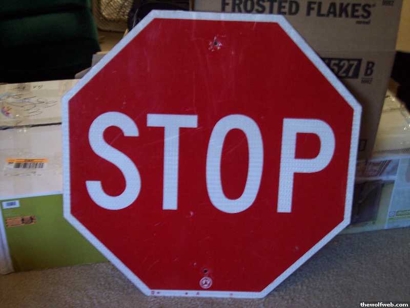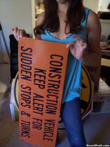 i had a really cool one that said Stop Here while Flashing with an arrow on it.I figured I'd get harrased by TWW, so I just threw it away. There's nothing wrong with owning one of these signs, as people have mentioned in the thread.