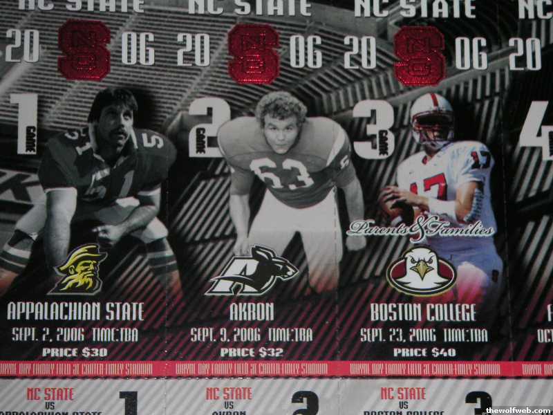 Ticket Registration for the NCSU vs. Appalachian football game opensAugust 25 at 12:01 AM and remains open until August 26 at 11:59 PM.All ticket information and the link to the online ticket system can befound at http://tickets.ncsu.edu1. When you first get to the site click on "Sign In" at the top 2. The username is your email ID 3. The initial login a pattern. The last four (4) digits of your SSN,your two (2) digit birth month, and your two (2) digit birth year. So,if my SSN is 123-45-6789 and my birthday is March 29th then my initialpassword would be 67890329. ****If you changed your password last yearit will remain the same.****You will always be taken to the Student Information Page, where you canupdate your information. Be sure to update your password the firsttime!4. On the left, click on "Request/Claim Tickets"5. Click on the game you want to attend. 6. Request your ticket - be sure to include the email address you want anotice sent to.7. You will receive an email at the end of the request period alertingyou to your status. If you won a ticket, you can go back to the"Request/Claim Ticket" link and claim and print your ticket. 8. You are allowed to cancel your ticket up until 24 before game timewithout penalty. Just click on "Cancellations" after you have claimedyour ticket and it will allow you to cancel.9. If you did not win the first drawing, you will be automatically addedto the 2nd drawing in case people cancel their tickets. You will get anemail with your status after this time. 10. Group seating arrangements are explained in the "Ticket Policy" PDFlink on the left navigation window.BE SURE TO BRING A STUDENT ID WITH YOUR TICKET ON GAME DAY!THE ID NAME DOES NOT HAVE TO MATCH THE NAME ON THE TICKET SELLING STUDENT TICKETS WILL NOT BE TOLERATED!
