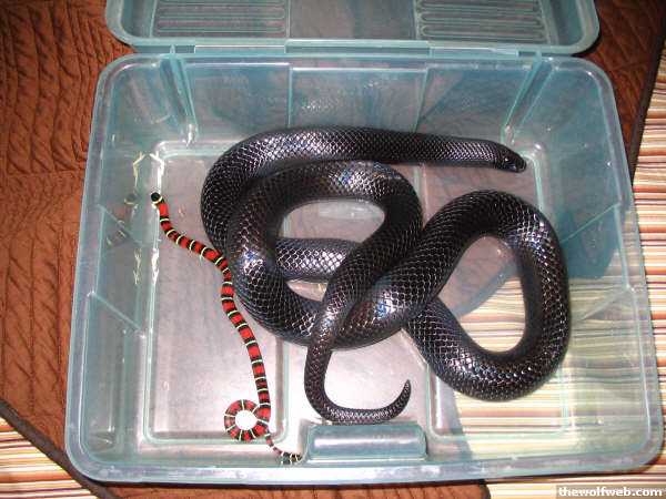 I have 2006 hatchling Black Milksnakes available. This species starts out looking like most tri-color milks (alternating bands of red, black, and yellowish white) and slowly turns a uniform black coloration (around 2-3 years of age). These guys thrive at room temperatures so there is no need for external heat and they are one of the calmest milks you can own (very similar to an Andean Milksnake). They max out at 5-6 feet as adults requiring appropriately sized housing. The picture below is of a breeder female and a hatchling from last year (they all look similar and if needed I can send individual pics). Before I get the obligatory bitching about how you can buy a milksnake for $35 let me assure you that I am well aware of this and although it should be obvious THESE ARE NOT SINOLOANS, NORMAL HONDURANS, or PUEBLANS. All of those species are more common and carry a smaller price tag. Oh yeah, and they suck compared to B Milks Males $70Females $80Pairs $140