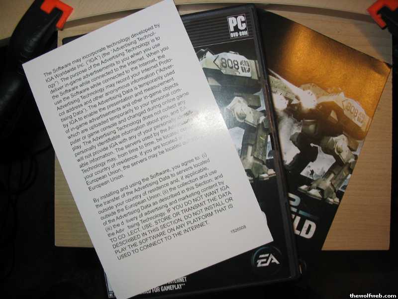 "... When you open the box, a big slip of paper falls out first, preceeding any discs or manuals. The slip of paper says, essentially, that 2142 includes monitoring software which runs while your computer is online, and records "anonymous" information like ..."