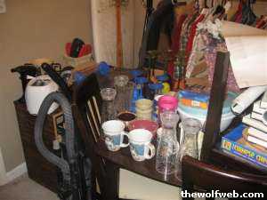 Featured items with additions!!! Kitchen table and chairs, vacuum, Bookshelves, DVD/CD shelving unit, many kitchen items, lots of linens, men and women's clothing (shirts, pants, dresses, skirts, coats), shoes, TONS of jewelry, board games, posters, light bulbs, electronics, home decor and more!!!!