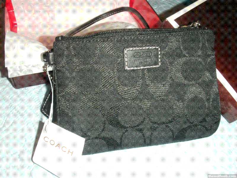 I am selling a brand new, never been used, black Coach wristlet. Rounded edges, signature jaquard black fabric (signature C's pattern). 6" wide x 4" high. Fabric lining. Tag is still on Purse. Selling with original box, gift bag, and coach gift paper!! Asking $35 please.