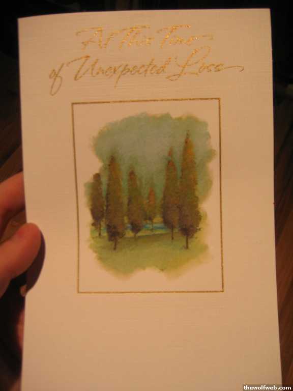 i got "in this time of your unexpected loss..."and im going to just write the score on the inside and color it red with marker[Edited on February 4, 2007 at 12:47 PM. Reason : pic to follow]