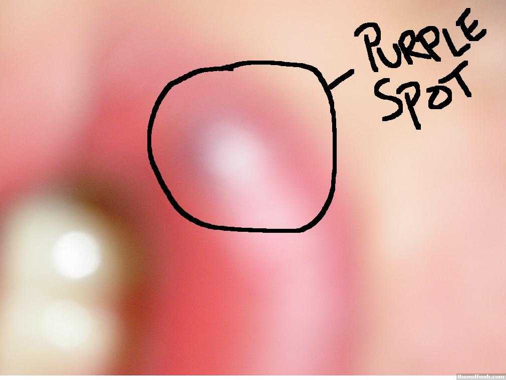 I have had a purple spot on my lip fpr like a year now, i think its a vein. it doesnt look like cancerand hasnt gotten bigger