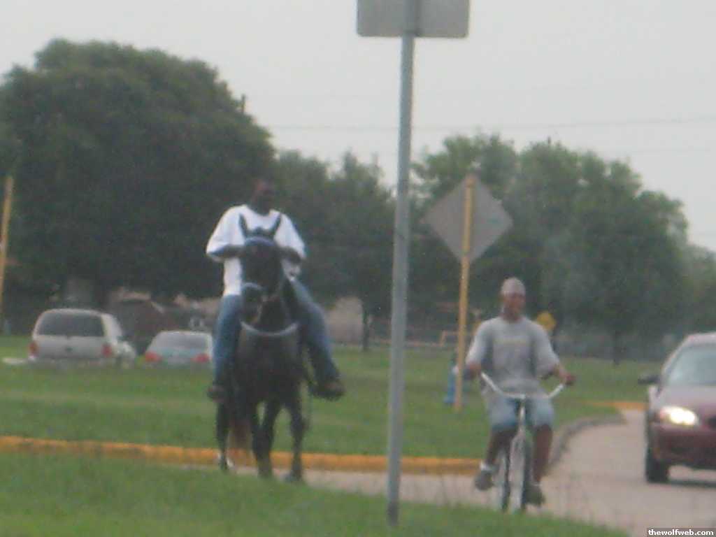 i do admire their effort at green transportationdude on the horse knew what he was doing enough to cross traffic on it