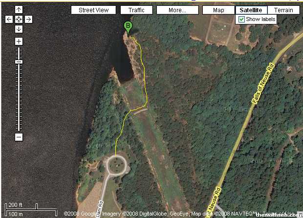 if im not mistaking, this is where the rock jump is on falls lakehttp://maps.google.com/maps?f=d&hl=en&geocode=&saddr=&daddr=35.94578,-78.581718&mra=mi&mrsp=0&sz=18&sll=35.945537,-78.581461&sspn=0.001924,0.003326&ie=UTF8&t=h&z=18