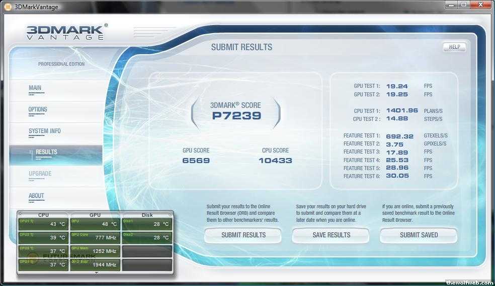 ^ Something's wrong with that picture. With my Q6600 clocked at 3.2, my CPU score is 10% higher than yours.