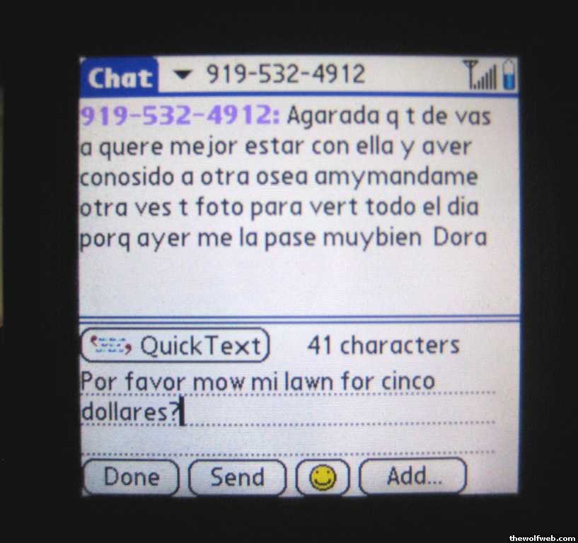 Haha post the phone number it came from so we can all send insulting spanglish text messages!