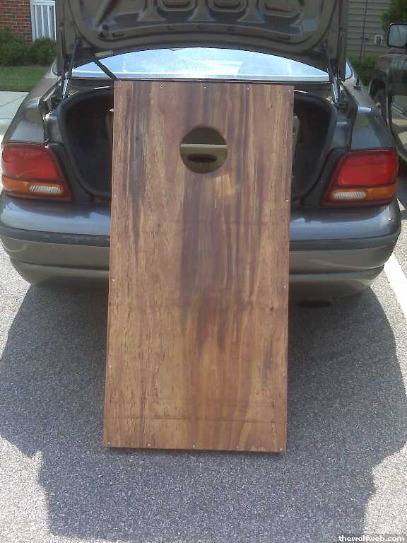 the 2nd pic isn't showing up for me.it would be cool to have the logo towards the top with the cornhole being the eye of the storm (might want to staple black cloth underneath the hole so the eye still looks black when you look at it), then mayhaps a "GO 'CANES" or something of the like in the bottom half of the board.[Edited on July 8, 2009 at 11:24 AM. Reason : erm, nevermind, the hole is too big.]