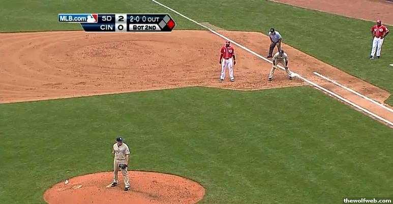Top of the 4th, 1 out. Runner on 1st. Still 2-0 shitty Padres leading.