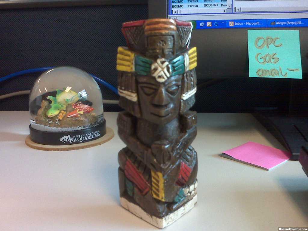 I should take a picture of my stuff. This little Cancun statue is fucking hilarious.