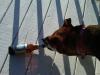 The dog found my recently emptied bottle and was curious.