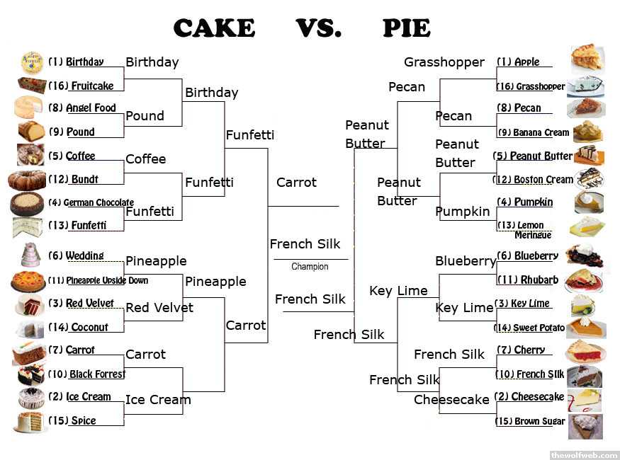 WTF is birthday/wedding cake supposed to be?My elite 8 would be:PoundGerman ChocolatePineapple upside downIce creamApplePumpkinBlueberryCheesecakePumpkin Pie over Pineapple upside down cake in the finals.