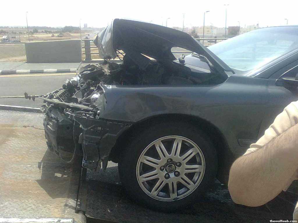 Rammed my Volvo S60 at 40-50 mph straight into the back of a Chevy Tahoe stopped at an intersection. (like ramming into concrete) And it had the towing thing at the back.Both airbags came out... nose cartilage is swollen from the impact with the airbag. Otherwise I am fine.Tahoe suffered 2 tiny dents in the tailgate and a very slightly damaged bumper. Showed pic to people and they couldn't even see the damage until them zoomed.My car however is another story. Front end is completely shattered. Boot lid folded onto itself. Left body panel front of driver's door is very loose. Radiator, and other things around it and behind it annihilated. Engine seems to be OK according to the mechanic I took my car to, but he said he can only tell for sure when he removes all the debris infront of it and inspects it more thoroughly. But currently he is trying to procure parts from the auto junkyard, but he didn't find an S60. Found an S80 but that won't do. He is looking tomorrow at another junkyard. New parts from the Volvo dealer would cost an arm and a leg.His estimate for used parts and labor: $2,700His estimate for new parts and labor: $5,400If dealer fixes car (with new parts): ~ $8,000Oh, and the mechanic said only the dealer can put in new airbags. He will just put the deployed ones back in, but of course, they won't work again. Airbags would cost an additional ~$3,000 at the dealer's. Or, I could choose to drive without airbags.Don't know what to do if he is unable to locate a suitable donor S60 at the other junkyard. Should I spring for new parts and pay around 5K to 6K in total (plus 3K for airbags)? Or should I sell it to the junkyard? He estimates I would get only about $1,500 to $2,000 for it if I am lucky. Then I could buy something that is a lot easier and a lot cheaper to fix and maintain, like a used Camry or something.I shouldn't have gotten the Volvo in the first place. Had I had a Camry/Corolla/Civic, it would cost only about $1,500 for parts and labor, and lots of workshops would have been able to fix it. (Only a few people do Volvos)Or if I had comprehensive insurance (only 3rd-party is mandatory here), it would have cost me nothing. Can't help thinking like that... I was planning on getting insurance in a week or two And in the meantime, I have to pay loads on renting a car till my car is fixed/buy a new one. Fuck.