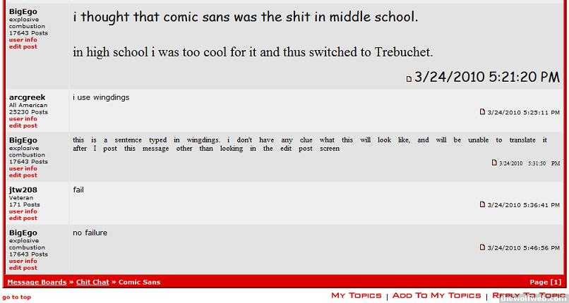 i thought that comic sans was the shit in middle school. in high school i was too cool for it and thus switched to Trebuchet.]