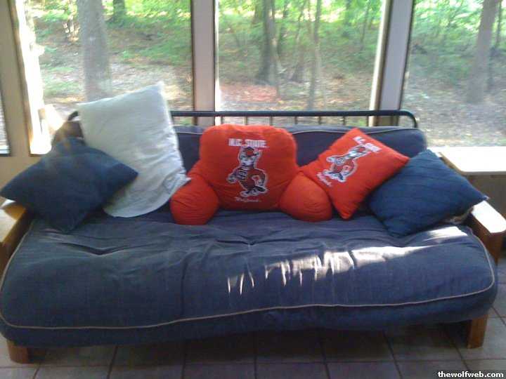 It's a Futon, it has storage areas in both arms. Folds flat, mattress included. $50 obo. NC State pillows not included.