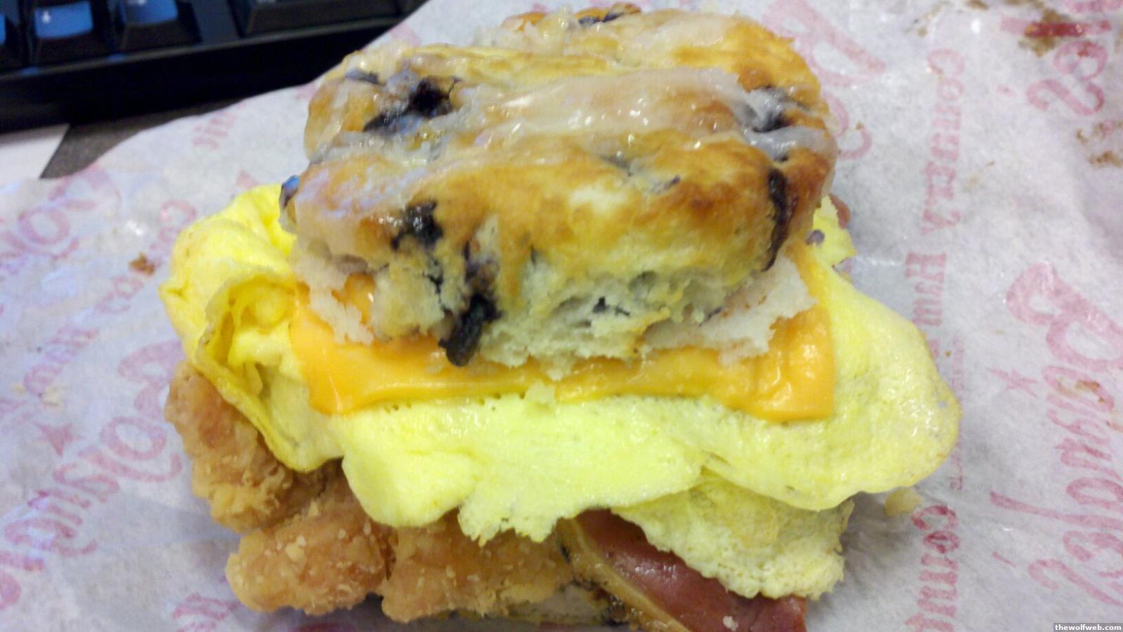 Doesn't really need explaining to demonstrate its awesomeness. It's a bojangles biscuit with a cajun filet, egg, cheese, and country ham.