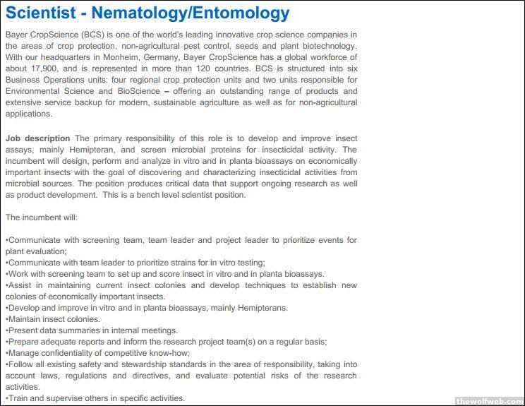 the other thread was dead. Post job openings.new job opening for biology people at bayer
