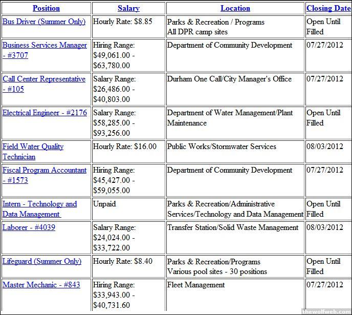 CITY OF DURHAM JOB OPENINGShttp://durhamnc.gov/ich/as/hr/Pages/city_jobs.aspxthis one is my favorite AQUATIC INSTRUCTOR