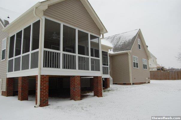 I don't want to to do the plastic b/c I know too many folks who have that and they wish they would have gotten sliding glass doors. The plastic discolors, etc...The quote I got was for a 2-3 foot high glass panel all the way around on the floor. Then above that is sliding glass doors with screen behind. So 100% glass, 50% air. That quote also includes all the electrical outlets they have to put in (because of code there has to be about 8)It also includes tearing out the screen porch and installing a subfloor, carpet, etc....If you look in the snow picture, there is more than just the main porch area... to the right of it in the snow picture there is a "hallway" that is also screened in that leads to the patio. Just the main porch area is 14' x 14' and then the hall added on quite a bit more space.