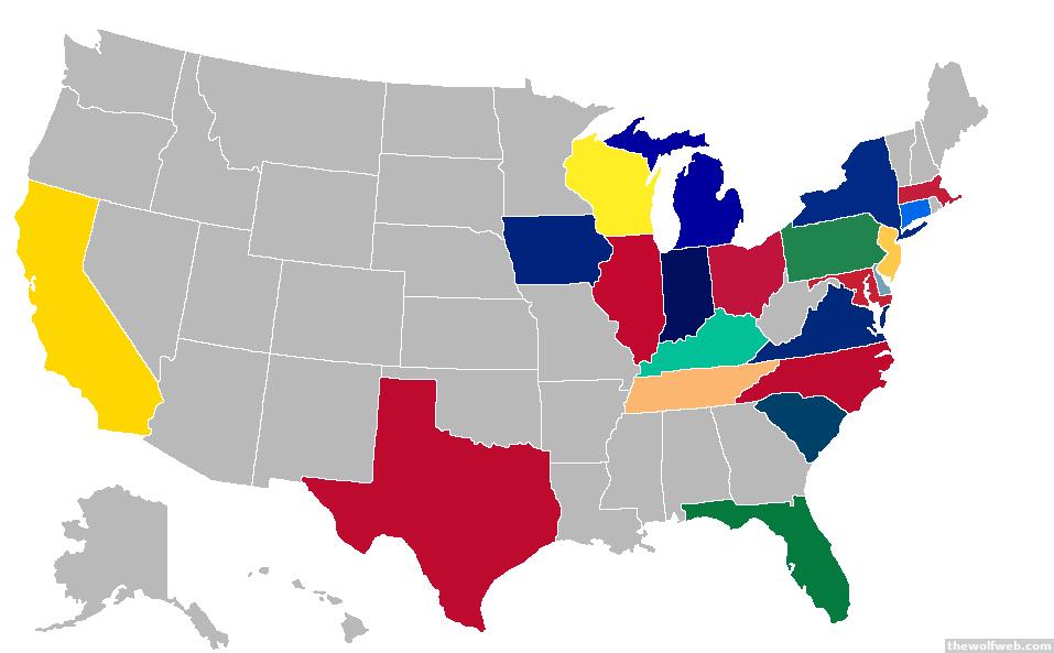 Most of the east coast states and some neighboring those, that's about it.