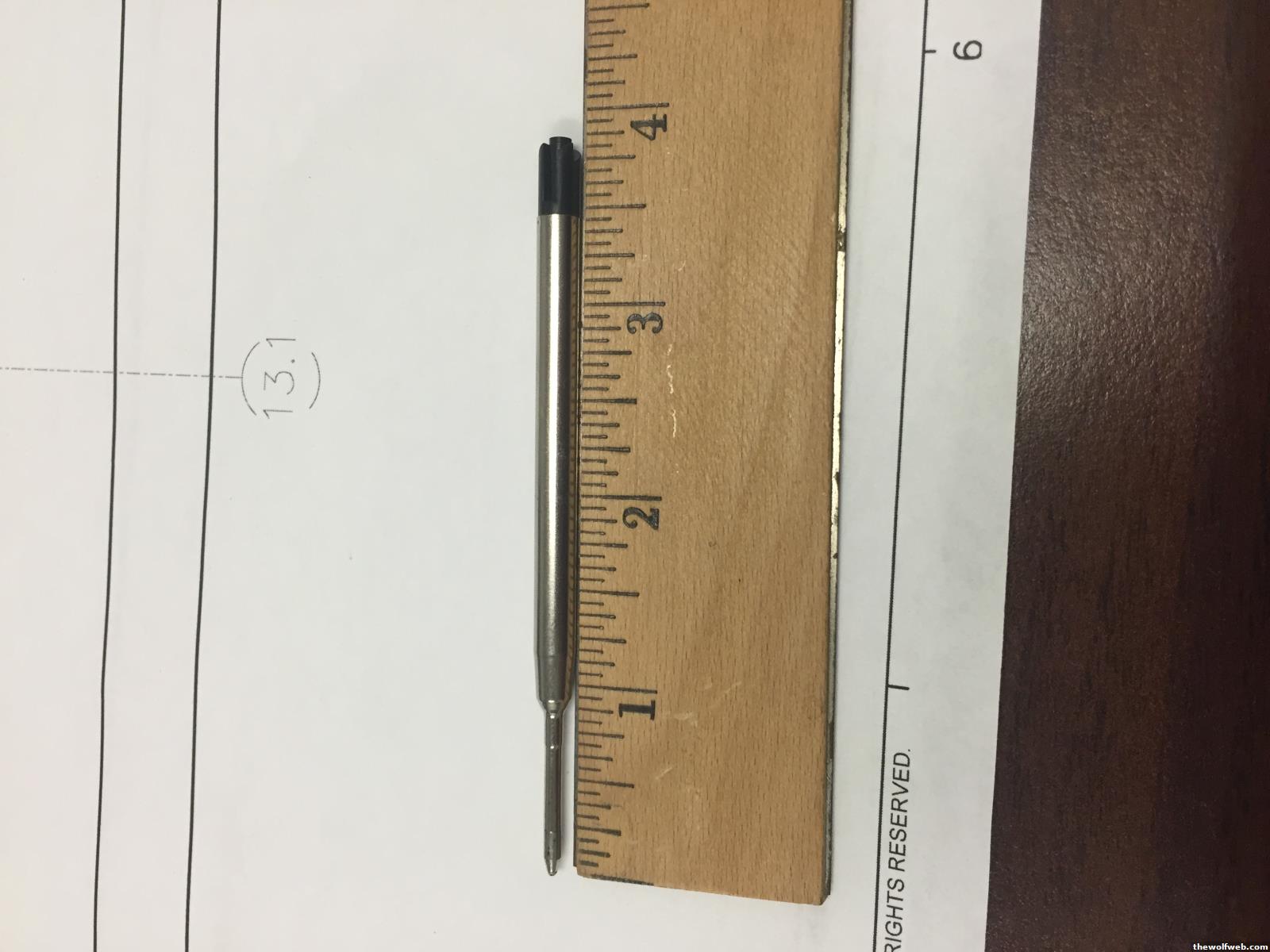 large image, but here is the pen ink cartridge. There are no markings on it whatsoever. Anyone know if there is a rollerball or gel alternative that would match this size?