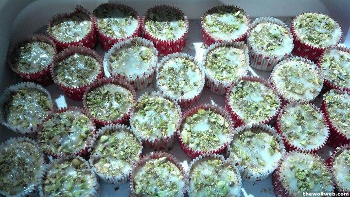 Angel food cupcakes w/ pistachio and lime glaze
