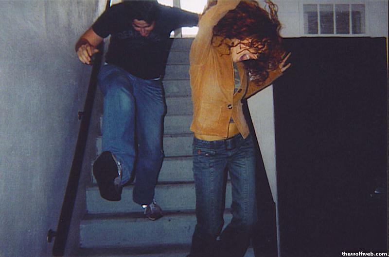jumping down the stairs!