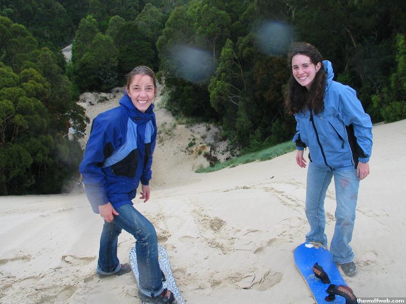 Amanda and Vanessa about to sandboard