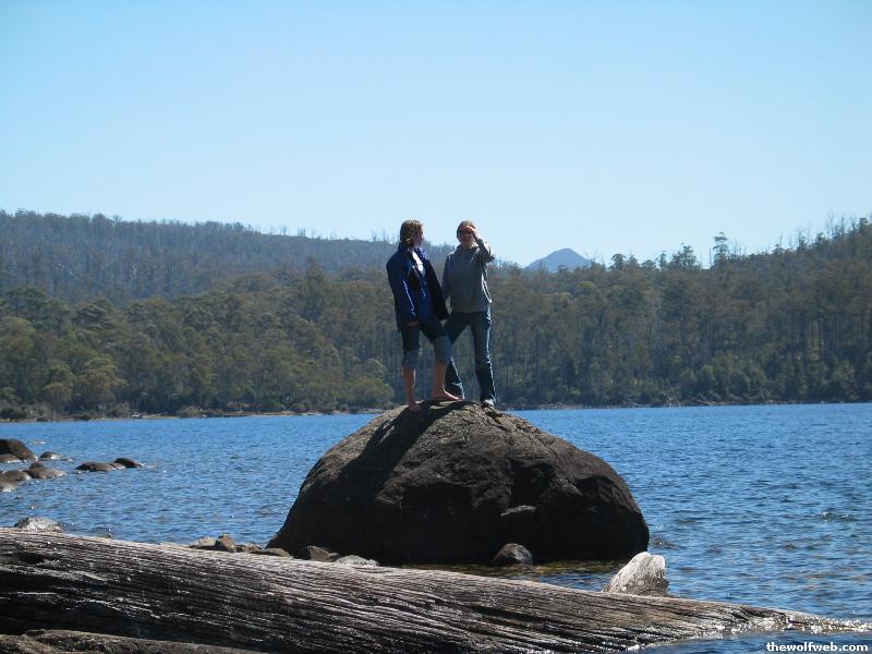 Jess and Amanda standing on a big rock