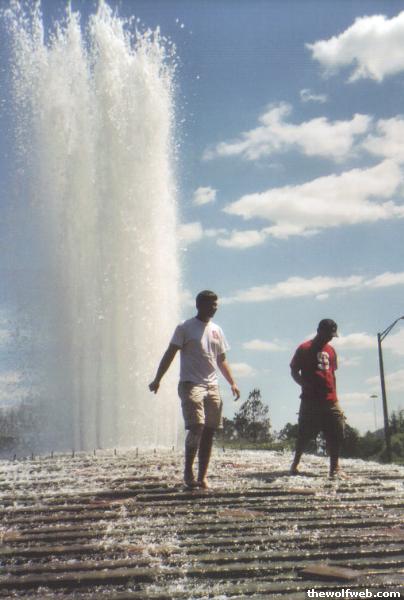 John and Jimmy in the fountain