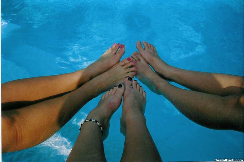 Jessica, Mine, and Allison's feet in the pool