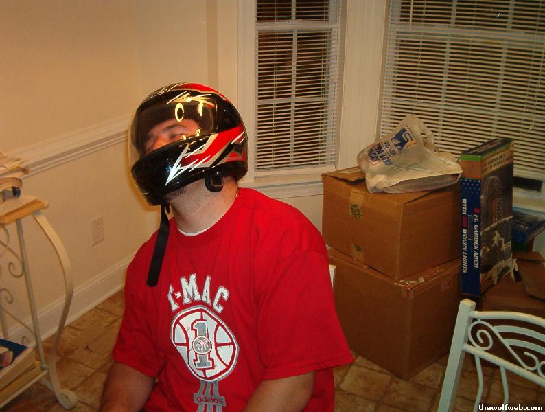 Tanked with a motorcycle helmet on