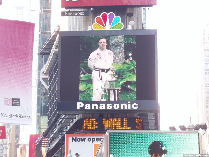 Brother on jumbotron in Time Square