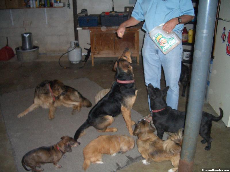 Dad giving out treats to the dogs