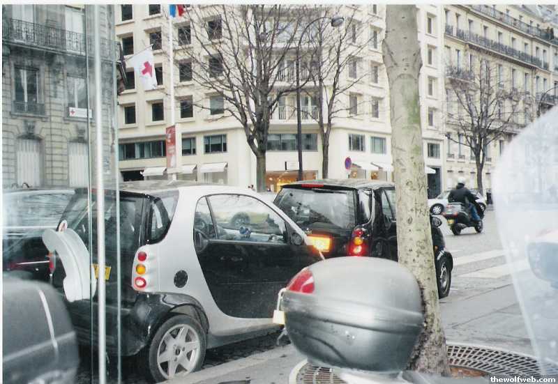 a tiny smart car in Paris