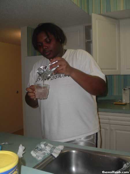 felicia mixing minute maid juice with bacardi razz