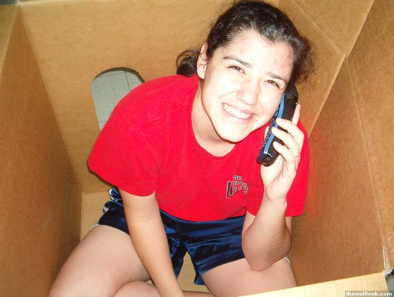 Jennifer talking on the phone in a box...she's spe