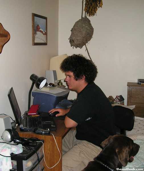 » At the computer.