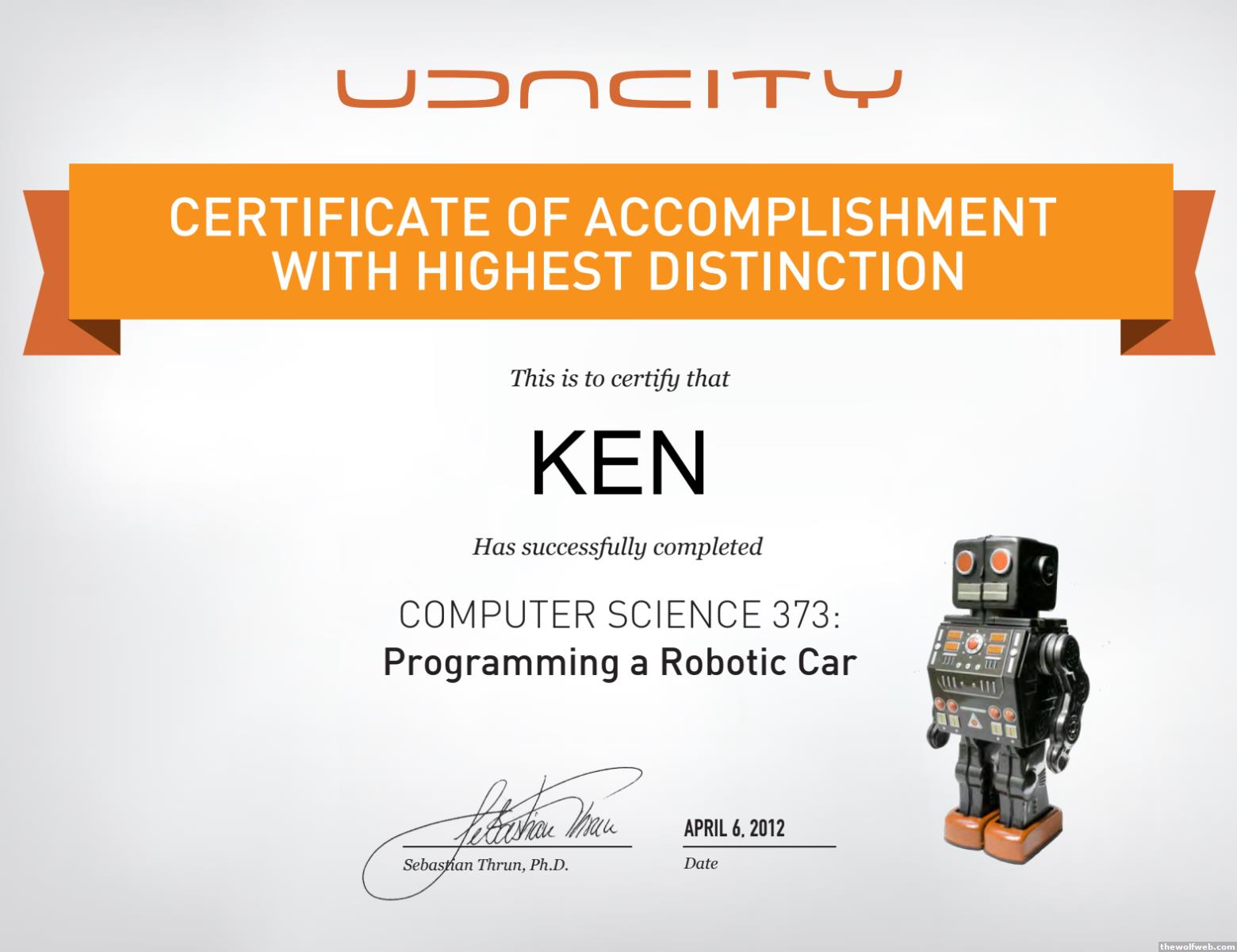 Udacity Certificate Self Driving Cars